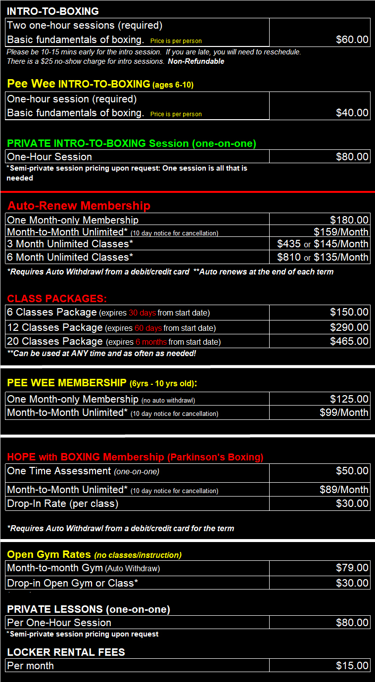PLEASE NOTE: Wolfpack Boxing Club does not hold, transfer or refund memberships or Intro session fees.